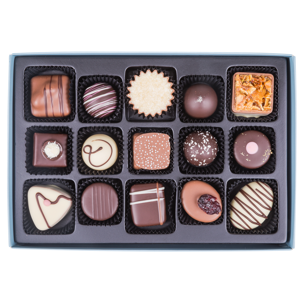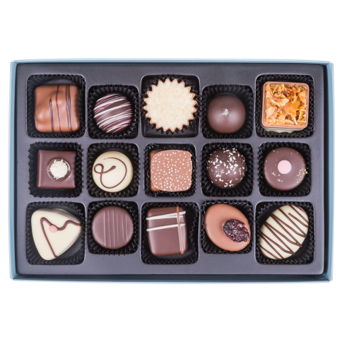 NL Ingrediënten: suiker, cacaomassa, cacaoboter, volle melkpoeder, plantaardig vet: palm, koolzaad, zonnebloem, shea, van palmpitten, kokosnoot; invertsuikerstroop, room, glucosestroop, boter olie, water, humectant: E422, sorbitolstroop; lactose, hazelnoten, sorbitolstroop, honing, frambozen, volle melk, alcohol: Mokka likeur, vanille likeur, gedistilleerde drank noten, ethyl; emulgator: soja lecithine, zonnebloemlecithine, E471, lecithine; weipoeder, magere melkpoeder, pistaches, koffie, vetarme cacaopoeder, sapconcentraat van: zwarte bessen, sinaasappel, zwarte wortel; glucose-fructosestroop, plantaardige olie: zonnebloem; stabilisator: E422, E407, E1520, E339; natuurlijk aroma: vanille, peer, koffie, walnoot, amandel, wortel; geplette cacaobonen, amandelen, dextrose, concentraat van: wortel; magere cacaopoeder, zuur: E330; extract van: vanille, spirulina; natuurlijke aroma's, aroma's, gedroogde frambozen grutten, abrikozen, gekarameliseerde suiker, kleurstoffen: E161b, E150d, E100, E120, E133, paprika-extract; zuurteregelaar: E330; melkvet, gemodificeerd zetmeel, erwteneiwit, zout, tarwemeel, pulp van: duindoorn; gelerende stof: pectine; Bourbon-vanillepoeder, tarwe moutmeel, havermout, E1103, zetmeel, citrus vezels, conserveermiddel: E202; glansmiddel: E414; rijsmiddel: E500. Bevat naast cacaoboter ook plantaardige vetten. Bevat alcohol. Kan eieren, pinda's, sesam bevatten.