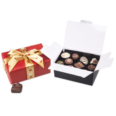 This standard ballotin contains no less than 20 delicious pralines, in 2 layers of 10. Of course are all of the made from Belgian chocolate. The fillings are made only from the best ingredients.