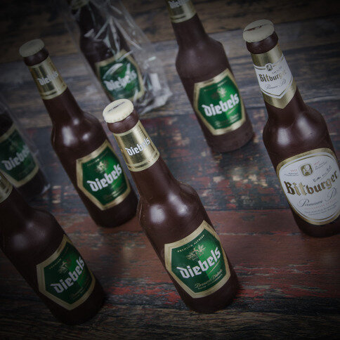 Chocolate Beer Bottle - Ingredients: cocoa mass, sugar, cocoa butter, whole milk powder, emulsifier: soy lecithin; extract: vanilla. Cocoa solids in dark chocolate minimum 60%. May contain gluten, eggs, nuts, peanuts, sesame . Net weight: 130 g.