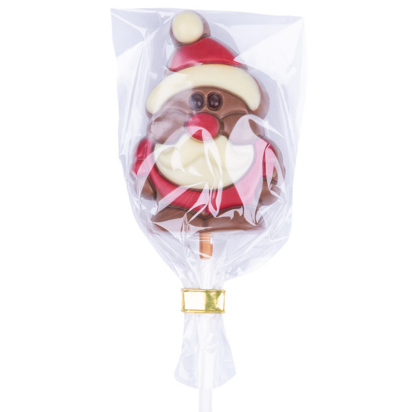 The lollipop is made from Belgian milk chocolate and Father Christmas is colourfully decorated.