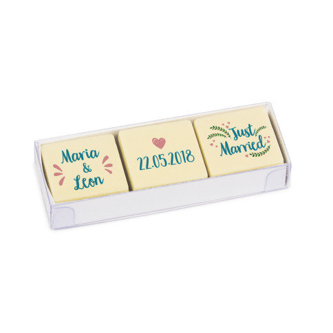 Ga zelf aan het werk en maak uw eigen gepersonaliseerde verpakking voor deze chocolade figuurtjes.