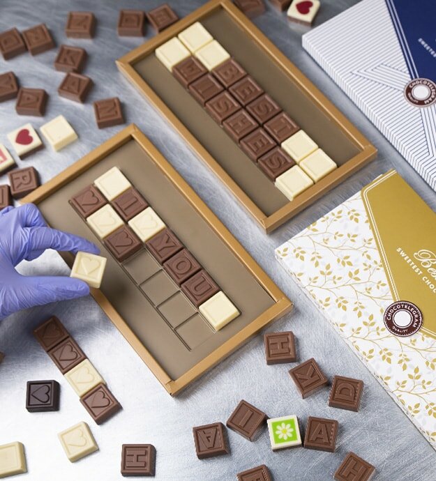 Searching for original wishes or messages? Write them yourself, with cubes made of the best Belgian chocolate. They can't get more original or sweeter.