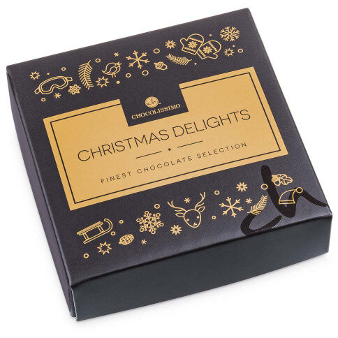 30 deliciously handmade pralines, packed in a silver coloured box. The lid of the box can be adjusted by your own uploaded picture or a postcard.
