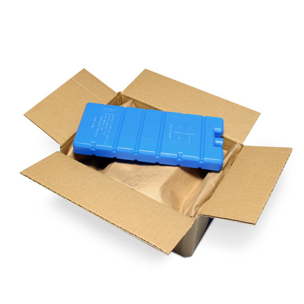 The COOLPACK (*) cooler is composed of a chemical substance (harmless for the environment), sealed in a plastic packaging. After a few hours in the freezer, it helps maintain a cool temperature inside a package.