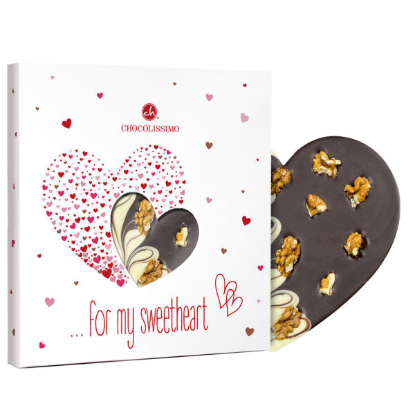 The chocolate lettes are made from the best Belgian milk chocolate and manually decorated with delicious ingredients. The letters I and M are enriched with delicious dried strawberries. The chocolate heart and the U provide a crunchy bite due to the roasted almonds.