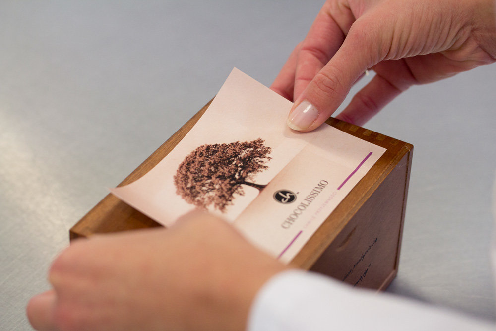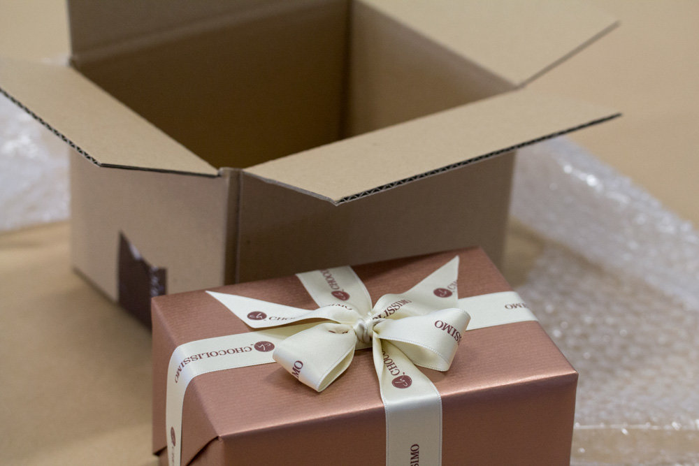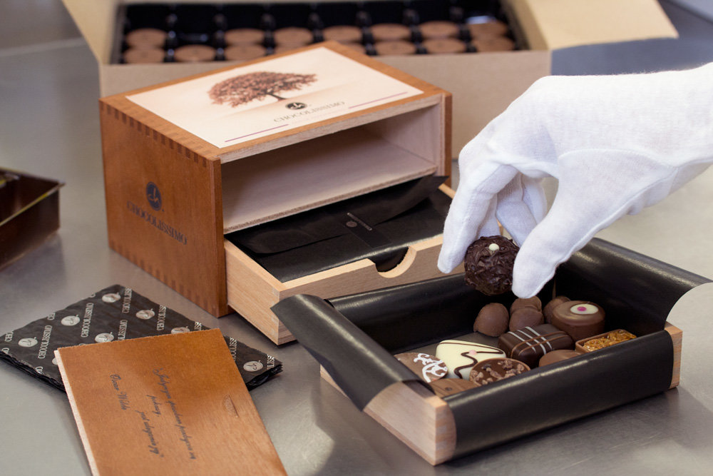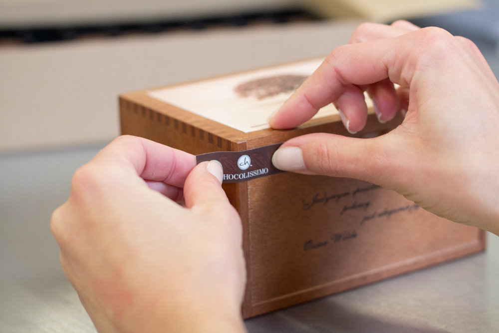 Each praline is placed into a package by our employee who has been allocated an order. |