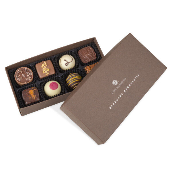 Surprenez tout le monde avec des chocolats personnalisés. Au total, vous trouverez six délicieuses pralines belges avec un délicieux fourrage et des ingrédients de haute qualité, le tout sans alcool.
