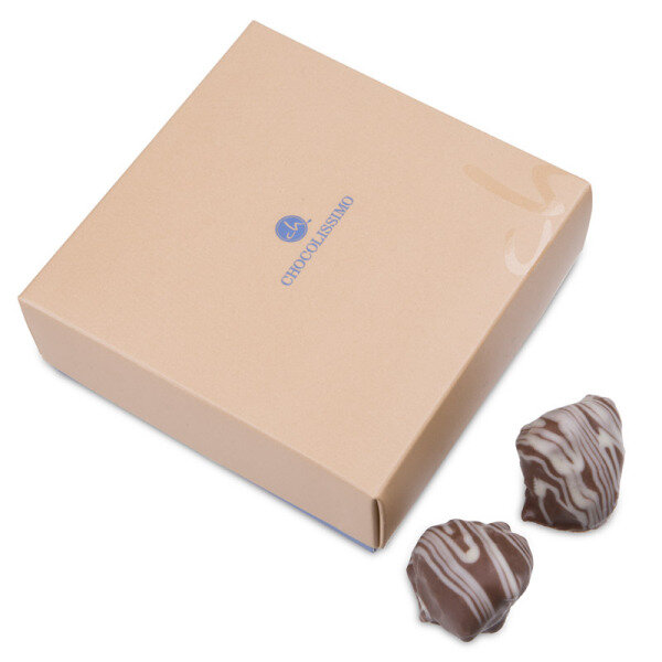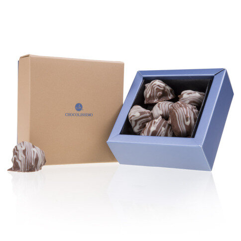 A beautiful blue with golden box, containing nine delicious handmade pralines. This is a gift that will be liked for every occasion.