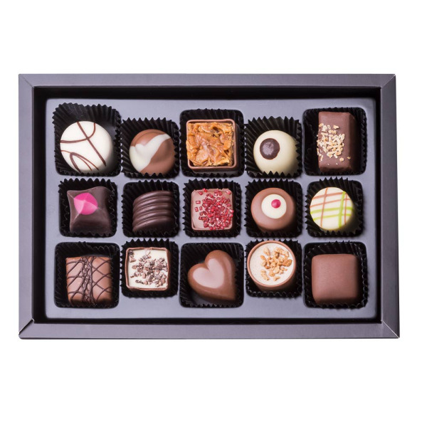 Laat ons uw smaakpapillen verwennen met deze exclusieve selectie van vijftien pralines.