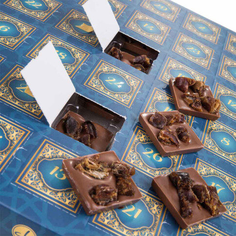 Ingredients: sugar, cocoa butter, whole milk powder, dried dates, cocoa mass, whey powder, emulsifier: soy lecithin; spices, natural flavouring: vanilla. Cocoa solids in milk chocolate minimum 33%. May contain gluten, eggs, nuts, peanuts, sesame .