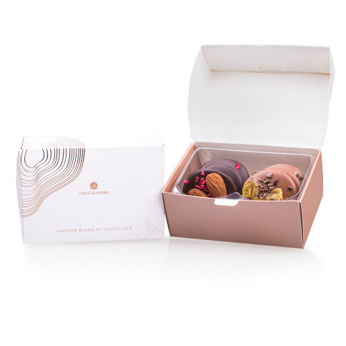 The elegance of the boxes goes perfectly together with the tastes and quality of the pralines. It all perfectly matches with each other.
