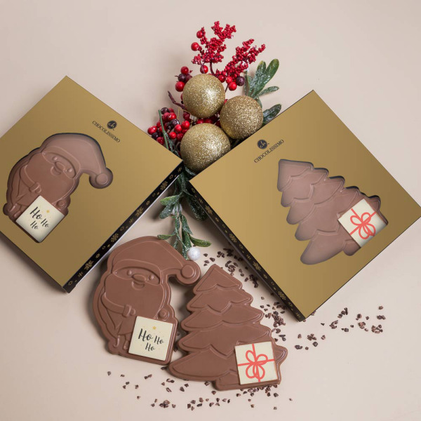 A beautiful, handmade, chocolate bar in the shape of a cute Santa Claus. De chocolate bar is made from Belgian milk chocolate.