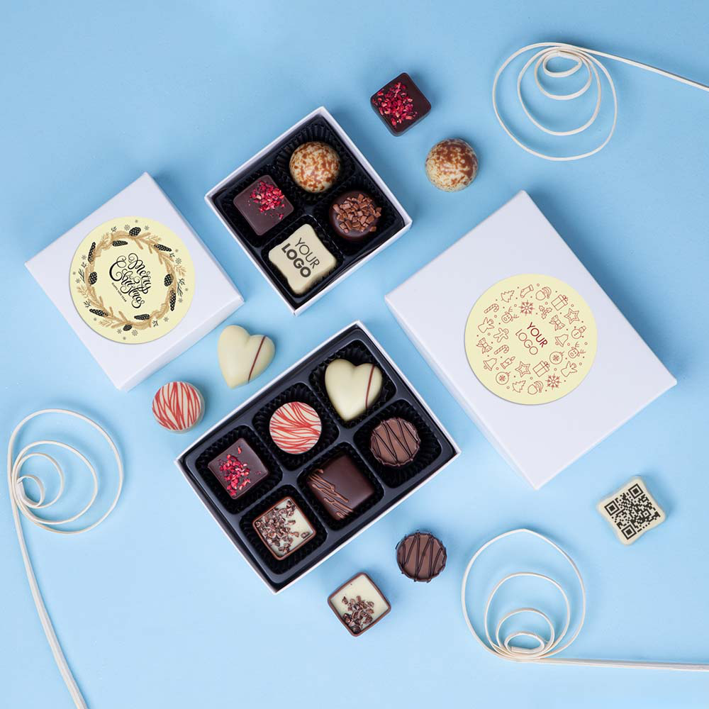 And then comes the creative part, after we pack them in a stylish white box. Because you can personalise the lid of the box with a sticker. Upload your own photo or choose one from our gallery. Add a text and we will print the sticker and stick it on the lid. And just like that, your personal gift is ready to be sent.