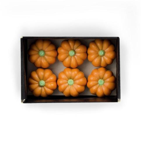 The six chocolate flowers are packed together in an elegant white box with floral design.