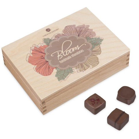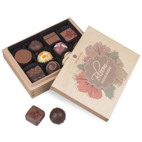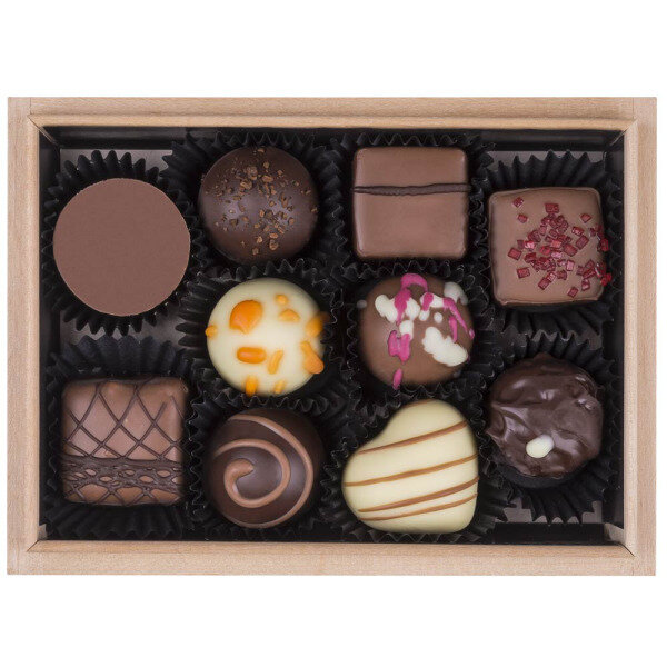 Pralines in een houten kistje