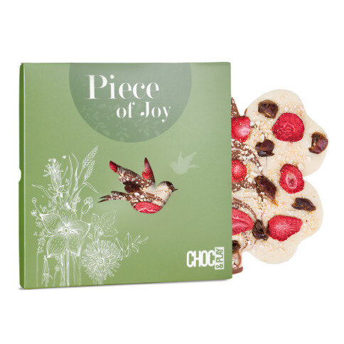 Een combinatie van twee uitersten, pure en witte chocolade op een leuke manier samengesmolten tot een chocolade hart. Versierd met heerlijke, knapperige noten. Verpakt in een leuk Choc&Play doosjes.