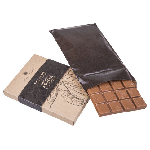 De gemakkelijkste en origineelste adventskalender. Die vindt u hier, in de vorm van een chocoladereep, gemaakt van Belgiche melkchocolade met 33 % cacao. Ieder blokje is genummerd zodat u het dagelijks kan afbreken en al genietend kan aftellen naar Kerstmis.