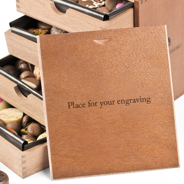 Wenst u het kistje nog persoonlijke te maken? Dan hebt u maximum 25 karakters om uw eigen wensen of boodschap op het deksel te laten graveren. Hierdoor wordt dit cadeau een ware traktatie voor al uw zintuigen.