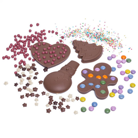 Laat de kinderen experimenteren met dit prettig setje om hun eigen chocoladereep te maken. U vindt in deze kit vier verschillende vormpjes en chocolade callets om te smelten. Als toppings vindt u knapperige sterretjes, knapperige balletjes van Ruby chocolade, gekleurde suikerballetjes en smarties.