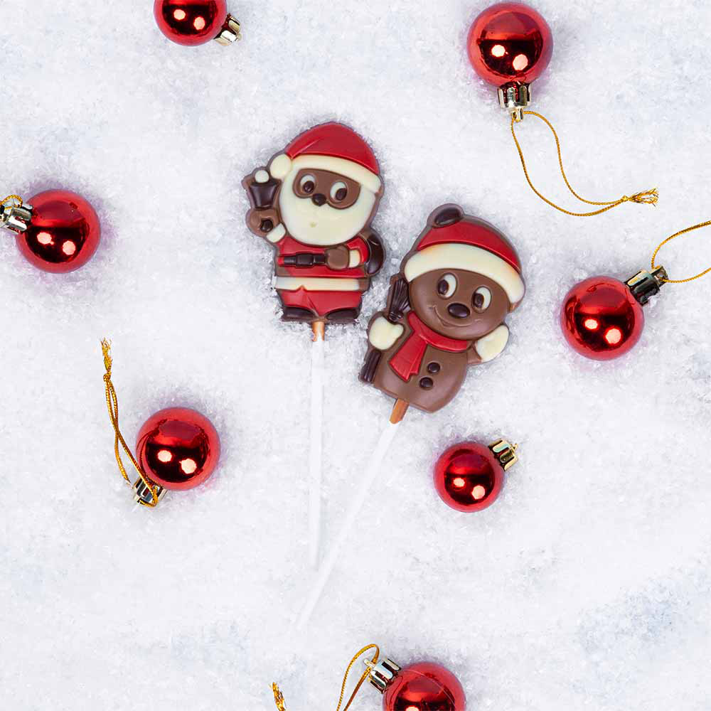 NL Ingrediënten: suiker, cacaoboter, volle melkpoeder, cacaomassa, kleurstoffen: E120, E160c; roompoeder, emulgator: soja lecithine; extract van: vanille. Cacaomassa in melkchocolade minimum 36 %. Kan gluten, eieren, noten, pinda's, sesam bevatten.