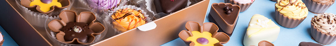 De beste pralines voor Pasen in verschillende smaken en vormen in speciale Paasverpakking.