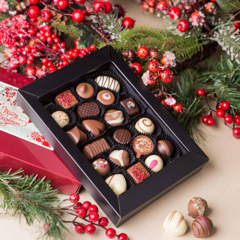 Een schitterend doosje met binnenin 20 overheerlijke pralines gemaakt van de beste Belgische chocolade en kwaliteitsvolle ingrediënten. Verpakt zonder plastic tray, met andere woorden minder plastic afval.