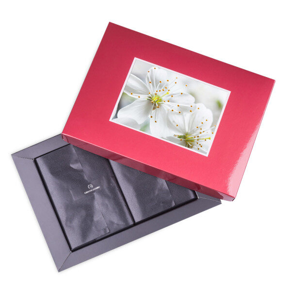 Wij printen de postkaart en bevestigen ze in het deksel, waardoor u een heel persoonlijk cadeau kan geven.