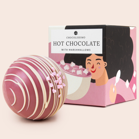 And this is possible with this chocolate ball, made from delicious Ruby chocolate, filled with mini-marshmallows. The ball is handmade and has a diameter of 59 mm. All you need to do is make a cup of hot milk (+/- 180 ml), add the ball and wait about 1 min, until the ball starts to melt and the marshmallows are starting to float on the surface. Stir and mix everything and enjoy this delicious Ruby chocolate milk.