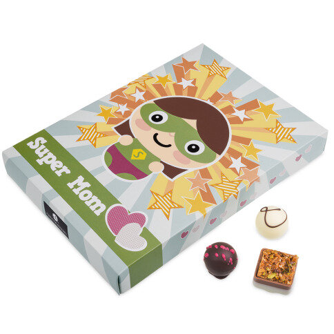 Samen zitten ze verpakt in een origineel doosje met een Super Mom afbeelding op het deksel. Dat maakt meteen duidelijk wat voor heldin mama is.