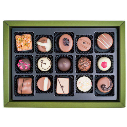 In dit doosje vindt u 15 overheerlijke pralines, allen gemaakt van de beste Belgische chocolade en kwaliteitsvolle ingrediënten.