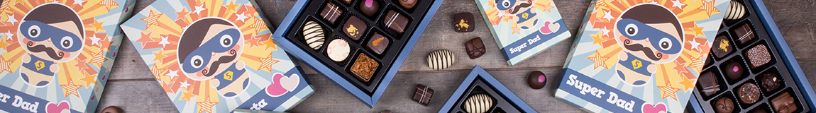 Every dad likes to be pampered, every now and than. These 15 handmade pralines, packed in a funny box, will make each dad a super hero.
