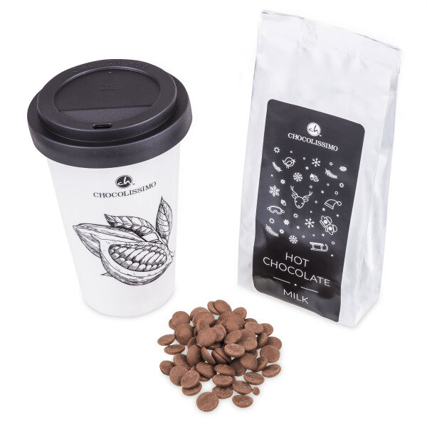 Tasse thermique en porcelaine dans laquelle vous pourrez boire un excellent chocolat au lait sans qu’il ne refroidisse. La tasse possède une double paroi en porcelaine et un couvercle en silicone.
