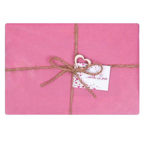 Een paashaas van pure en witte chocolade, versierd met frambozen. Verpakt in een paasdoosje met een paashaas venster.