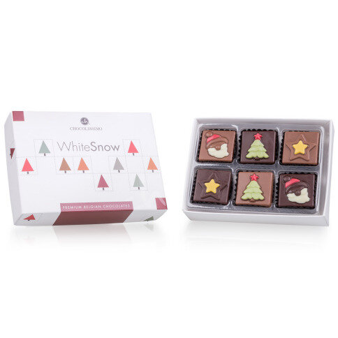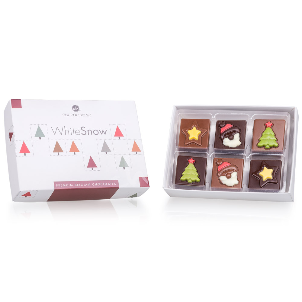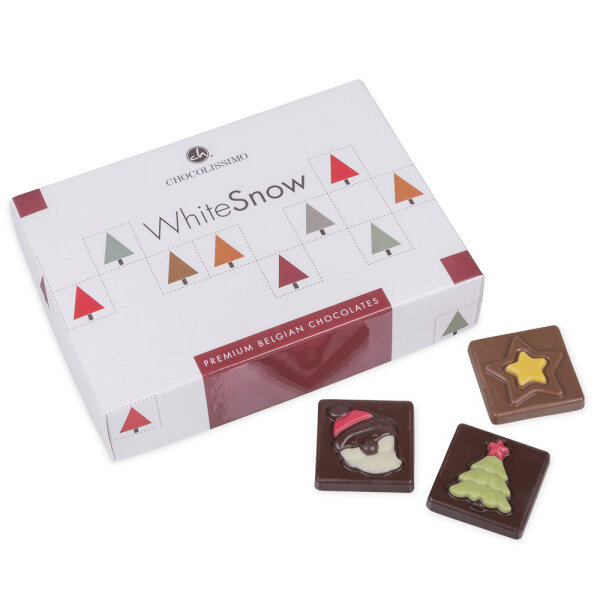 12 van deze heerlijke snoepjes zijn samen verpakt in een elegant wit doosje met een subtiel kerstmotief.